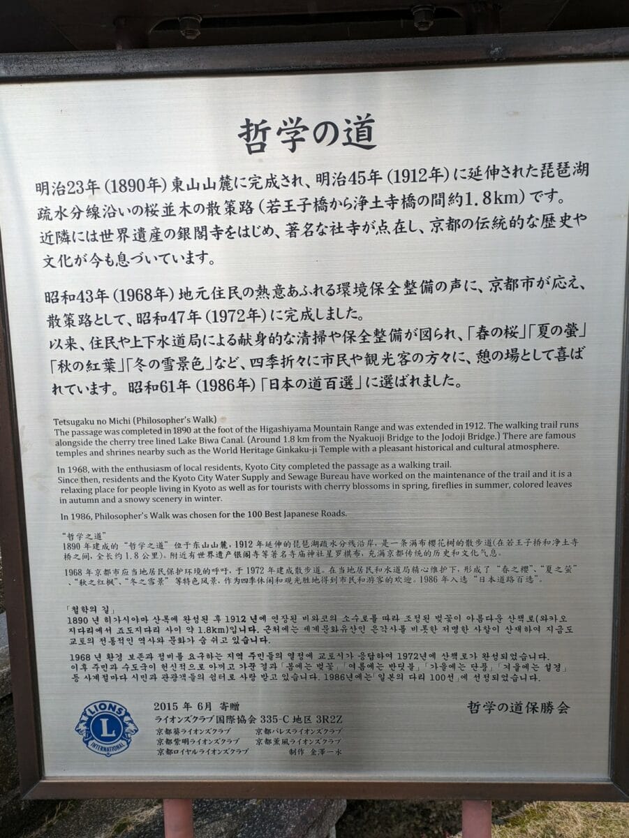 So, a walk along the Philosopher’s Walk is a peaceful and scenic experience, especially during the cherry blossom season. It’s a great way to enjoy the natural beauty of Kyoto while also exploring some of its cultural landmarks